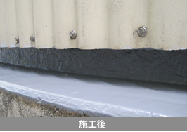 サイロ下への雨水侵入防止や雨水の跳ね返りからの鋼板の腐食防止のため補修を致します。